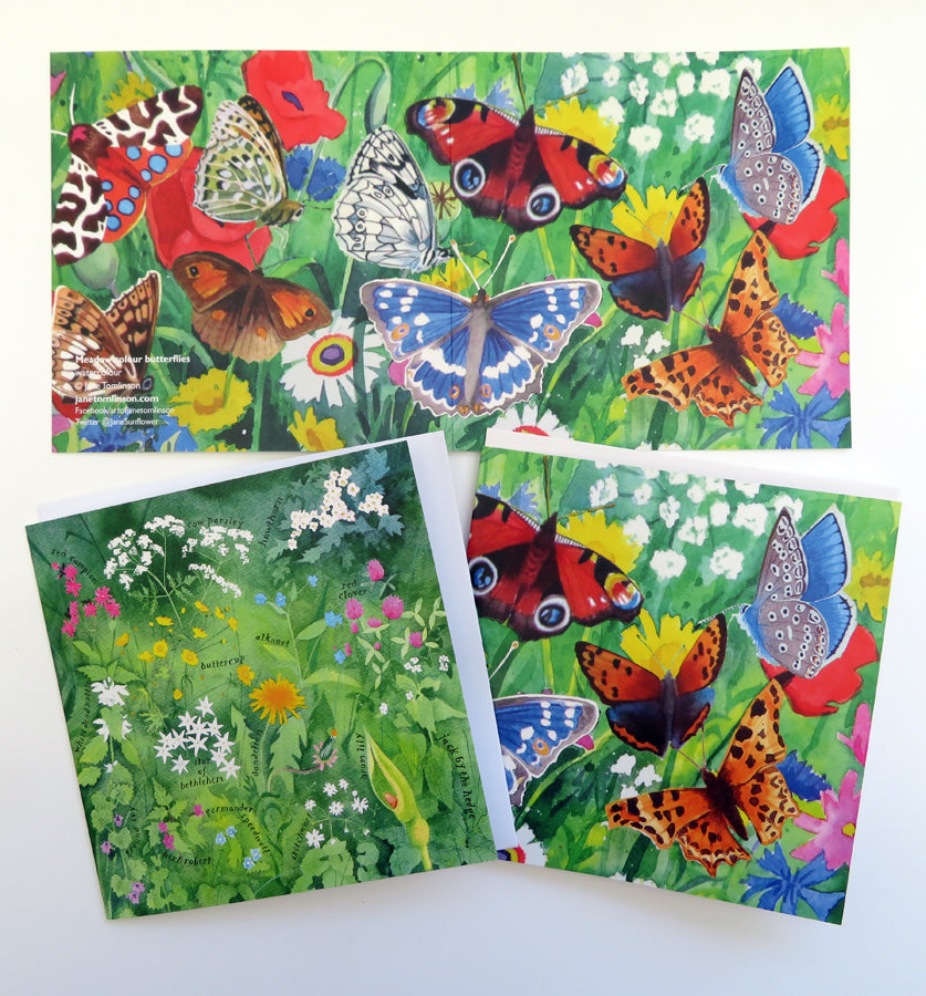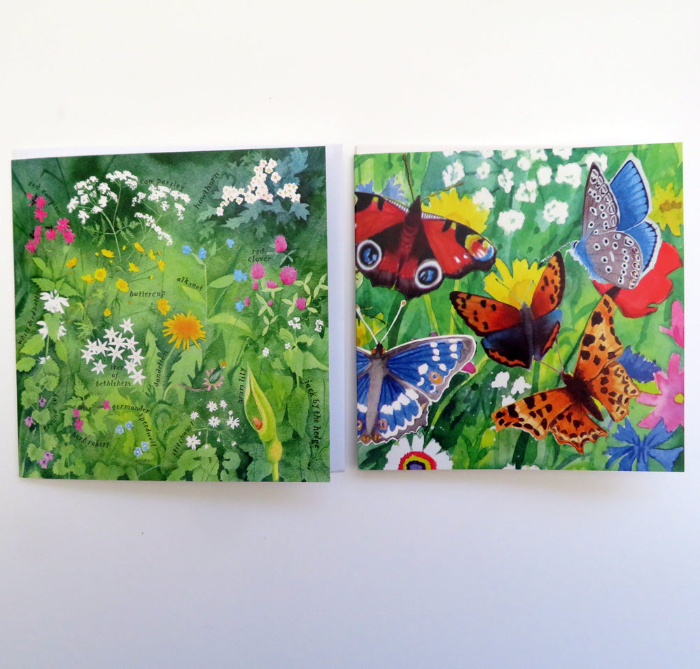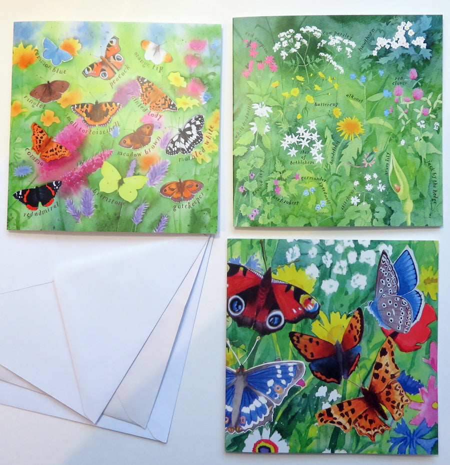 Butterflies and wildflowers greetings cards - pack of 3 designs