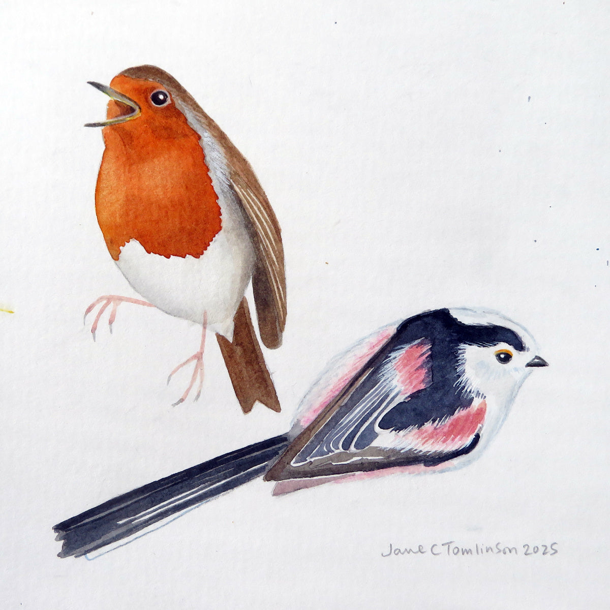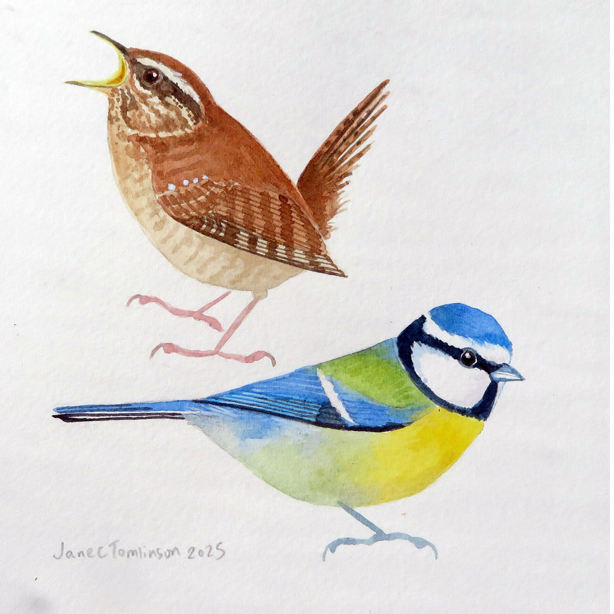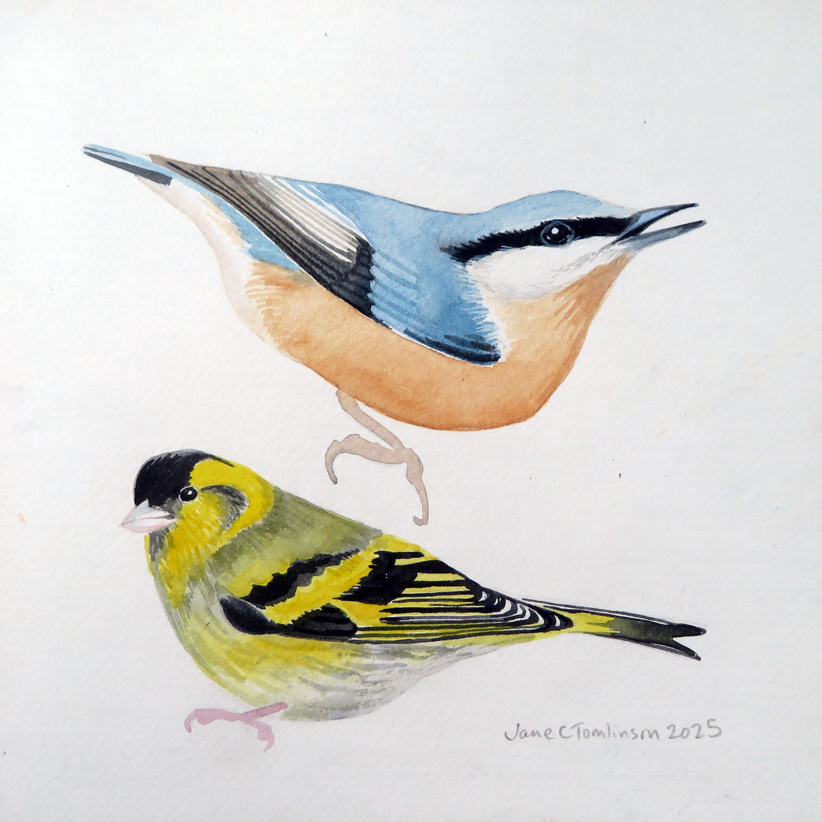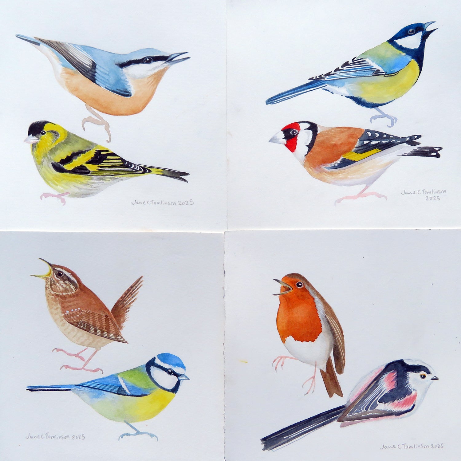 Charming small watercolours of pairs of garden birds, all of which I see from my studio window. Which one will you choose?