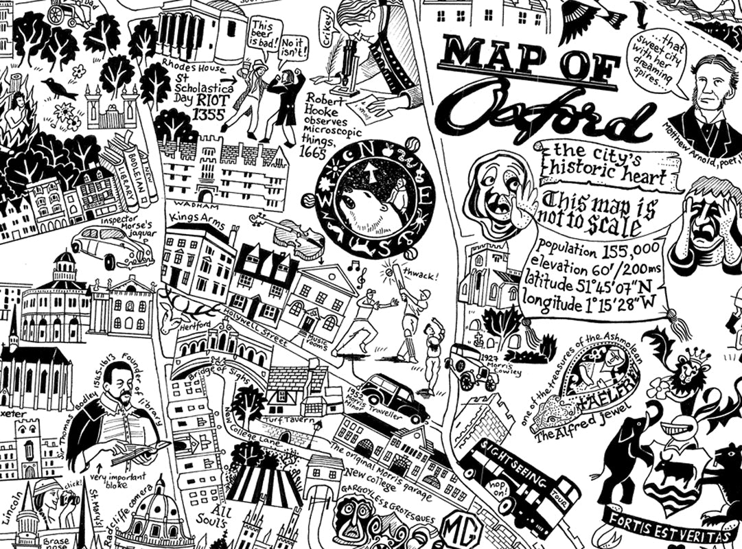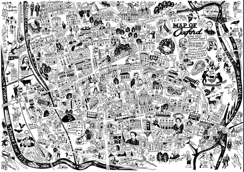 My map of Oxford is hand-drawn and will delight and amaze visitors and residents alike.