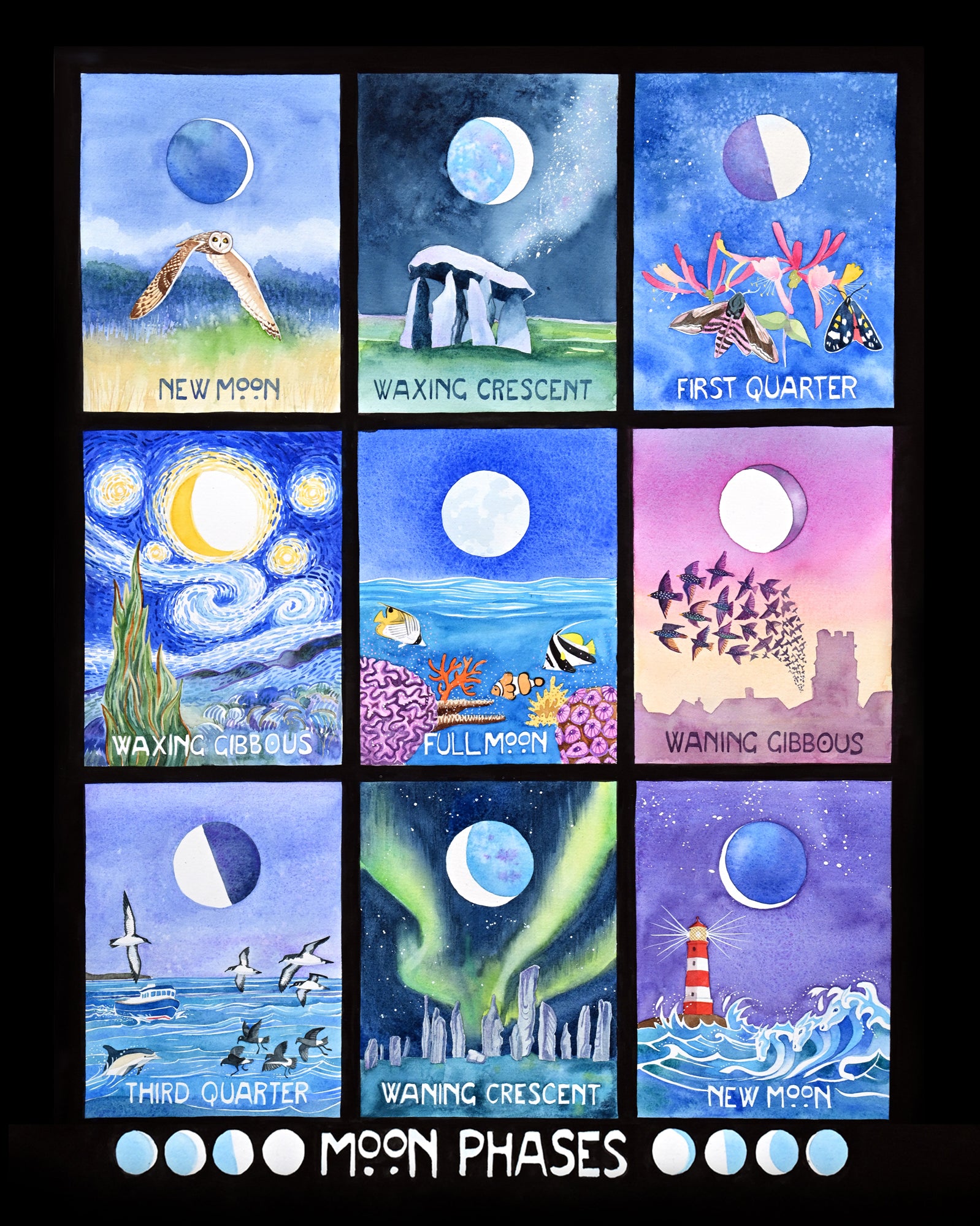 Love this design? A2 sized poster prints of my Moon Phases painting are available here, each one signed by me.