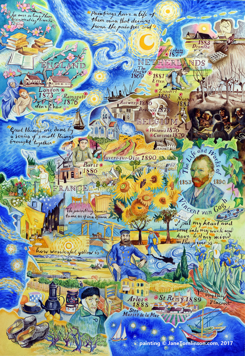 Van Gogh greetings card of my painting a map of the life and works of Vincent van Gogh.